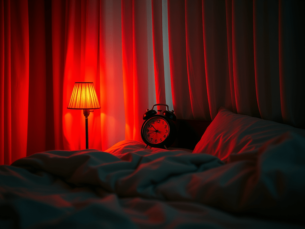 - Blue light, emitted by most screens and white lights, can interfere with melatonin production, the hormone that regulates sleep. Switching to red-toned lighting an hour before bed helps create a relaxing, sleep-friendly environment. Red light has minimal impact on melatonin, making it easier for you to fall asleep faster.
