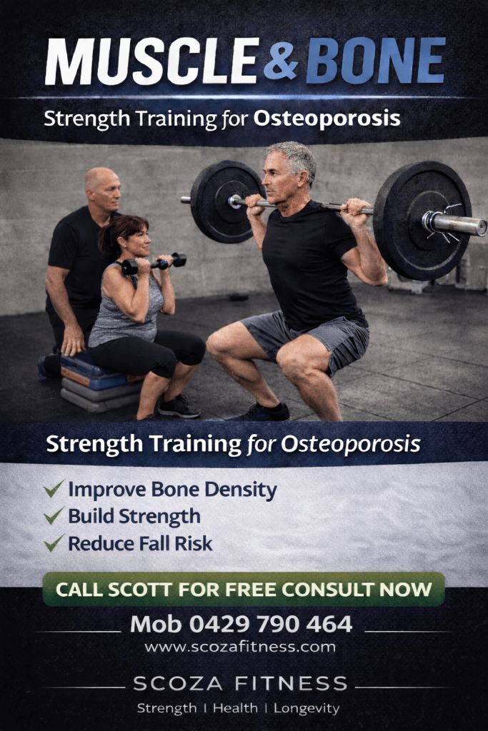 Our Muscle and Bone program targets those who have Osteoporosis or Osteopenia. It is a weight lifting program based on the results of the LIFTMOR study aimed at significant improvements in muscle strength and bone density.